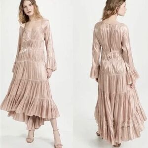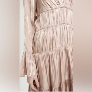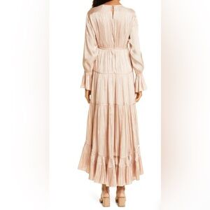 NWT CINQ À SEPT Nina Satin Tiered Long Sleeve Maxi Dress, Size 4