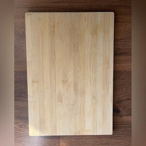 Durable bamboo cutting board with a clean, natural look that fits perfectly into any kitchen. Great for everyday meal prep or even using as a serving board for cheese, bread, or charcuterie.