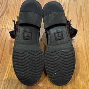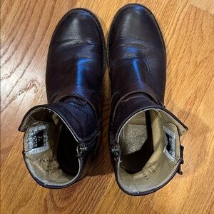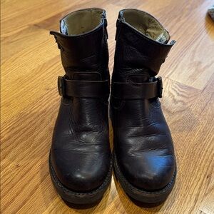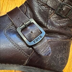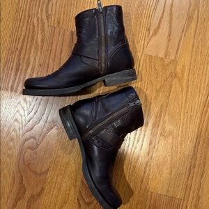 Frye Veronica ankle boots. Dark brown leather zip up with double buckle design. Comfortable and broken in but with a lot of life left! Perfect for casual wear. Please note all images for wear. Smoke free home, offers welcome!