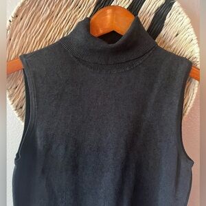 Casual Corner Silk & Cashmere Sleeveless Turtleneck Sweater in Charcoal Gray