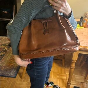 Vintage Dooney & Bourke Florentine satchel in the most beautiful, warm cognac leather — the kind of leather that gets better every year and tells its own story. This was my first “grown-up” handbag, and it absolutely delivers that energy: structured but soft, classic but not boring, timeless without trying.