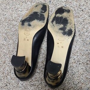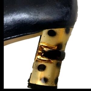 Vintage black shoes with black design gold buckles and leopard/animal print heels. Made in Spain. Very comfortable. Unique and rare.