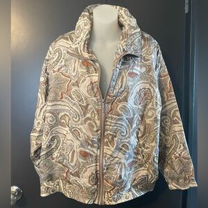 vintage silk jacket, 80s jacket, paisley bomber, oversized silk, retro windbreaker, neutral jacket, cottagecore, boho vintage