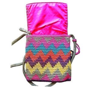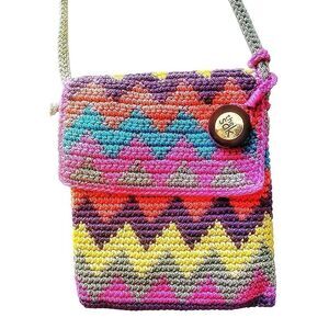 The Sak Multicolored Chevron Design Crochet Bohemian Coquette Crossbody Bag EUC