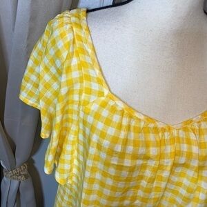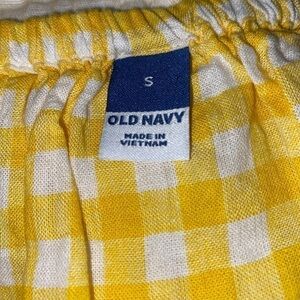 Item Description: Yellow White Checkered Print Tie Back Flowy Sleeves Old Navy size Small Fun Top Spring Summer Vibes