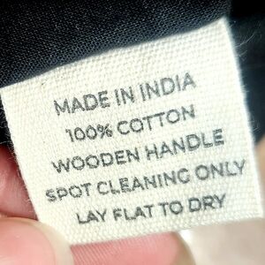 Rare Laude the Label vintage handbag. Black & beige, 100% Cotton macrame with wooden handles. Single compartment only, no pockets. Also has no closure at the top of the purse. Handles are 4-1/4" in diameter. Purse is 13-1/4" tall including the handle. Body is 8" W x 9.5" H. Excellent condition! no fraying or distress.