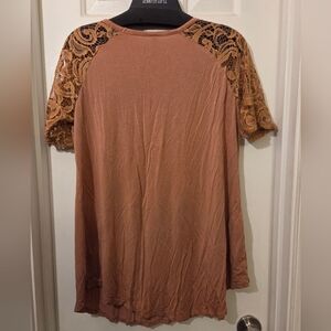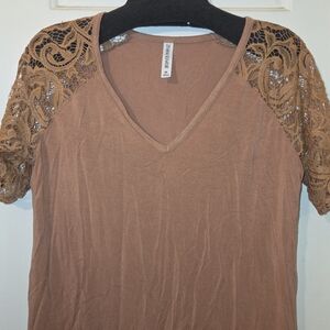 Zenana Signature Light Brown Lace Sleeve Top Blouse Shirt. Size XL.