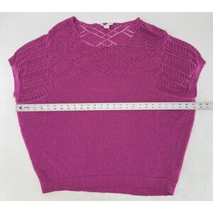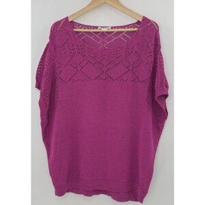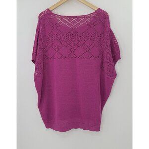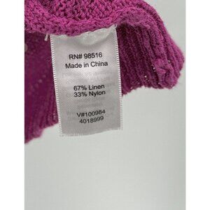 Coldwater Creek Magenta Open Knit Linen Nylon Blend Sweater Sz L 14 Beach Boho