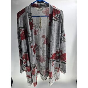 Agnes Orinda Womens 3X Floral Cardigan Grey Red Open Front Longline Pocket New