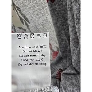Open-front cardigan in a soft heathered grey knit features a vibrant red floral print throughout. Designed with a relaxed, longline silhouette, this lightweight layer includes long sleeves and functional front patch pockets for added convenience. The stretchy fabric blend ensures a comfortable fit, making it an ideal choice for transitional weather or as a stylish topper for casual outfits.