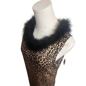Vintage Velvet Leopard Print Feather Trim Maxi Dress Vintage 90s Large Party