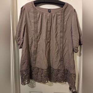 SHEIN Curve Taupe Lace Trim Blouse Top Shirt. Size 3XL.