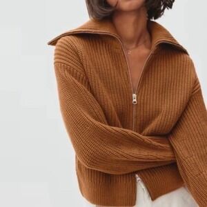 NEW Everlane Women Organic Cotton Full Zip Cardigan Brown Medium Chunky - New without tags.