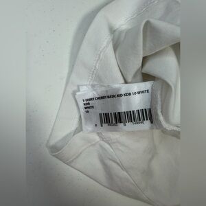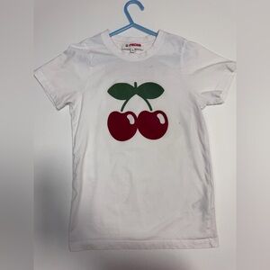 This charming kids' t-shirt features a playful cherry print on a crisp white background. Perfect for everyday wear, it combines comfort with style.