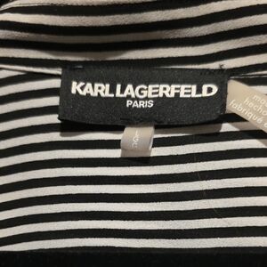 Karl Lagerfeld Black and White Striped Blouse with Ruffle Detail
