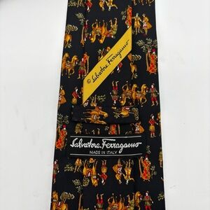 Salvatore Ferragamo Men's Silk Tie Black Renaissance Equestrian Horse Italy
