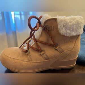 Sorel Evie Cozy Lace Up Leather Suede Wedge Ankle Booties Size 9.5