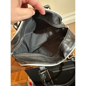 The Beatles Abbey Road Black Faux Leather Bowler Bag Satchel Rock Band Patches