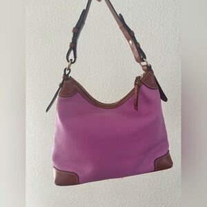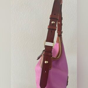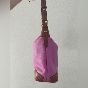 Dooney & Bourke Pebbled Leather Shoulder Bag – Pink with Brown Trim- LIKE NEW