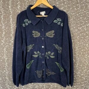 Vintage Dressbarn Knit Cardigan Leaves Sweater Boho Cottage Women's 18/20