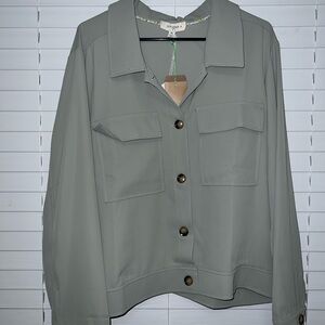 Stylish olive utility jacket by Umgee. Features button closure and front pockets. Ideal for casual wear.