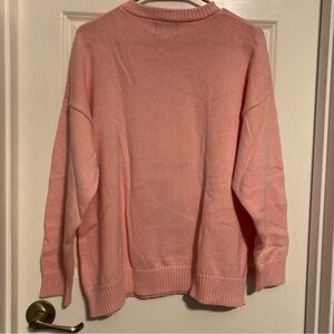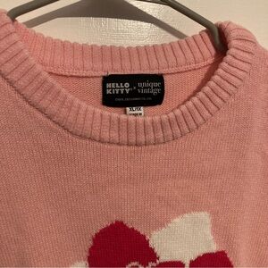 Pink sweater featuring Hello Kitty drinking a cup of coffee. Originally from Unique Vintage x Sanrio collab.
