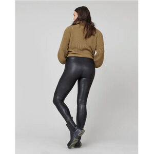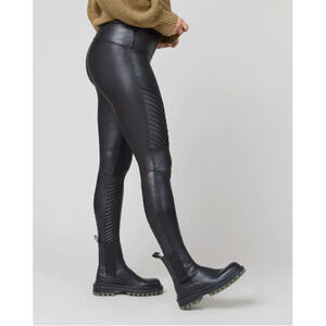 SPANX NWT Faux Leather Moto Leggings in Very Black // XS
