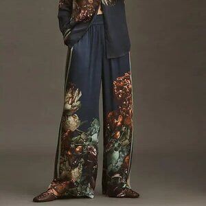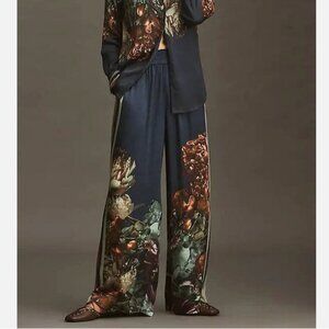 Anthropologie Conditions Apply Imara Satin Wide-Leg Pants Blue Floral MP NWT M P