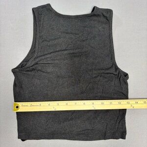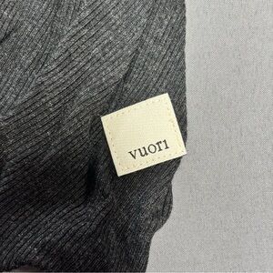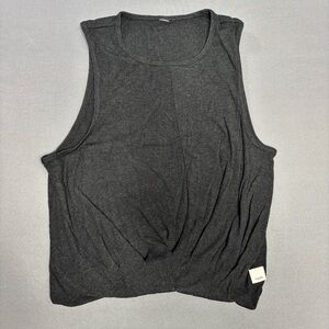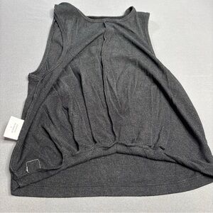 This Vuori Women’s Small Cove High Neck Tank Top is a heather black and has a Ruched front. Referred to the last photo. All tags were removed, except for the style and size tag inside the shirt.