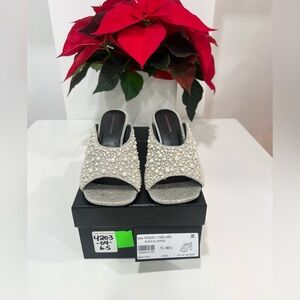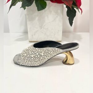 Pearly Beaded Mule Sandals In Silver