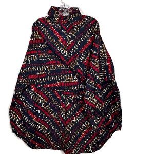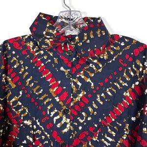 Oversized button-down is a signature piece from Grass-Fields, a global fashion brand founded by Cameroonian twin sisters Christelle and Michelle Nganhou. The brand is known for its modern take on African wax prints (Ankara) and its mission to empower communities through ethical production in Africa.