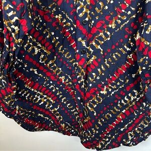 Colors: Vibrant Red, Navy Blue, and Gold