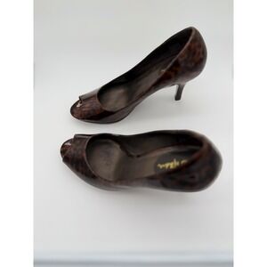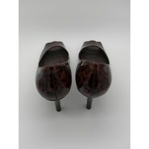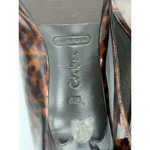 Cole Haan Leopard Patent Peep Toe Pumps Brown Black D29828 Heels Womens 6.5B