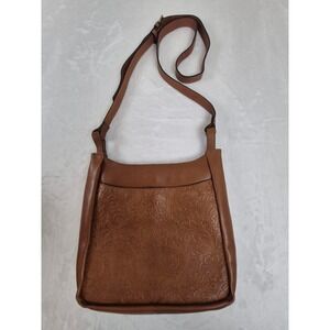 The Sak Brown Leather Tooled Floral Crossbody Shoulder Bag Medium RN 75343