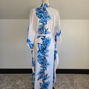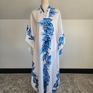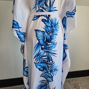 Resort Line White and Blue Hawaiian Caftan with Waist Tie