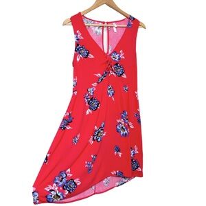 Xhilaration Red Floral Sleeveless V Neck Tie Front Dress Women Size Medium