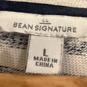 L.L. Bean Signature Cream and Gray Striped 3/4 Zip Sweater