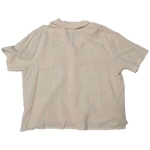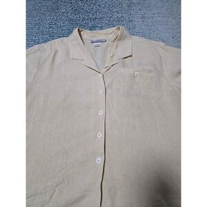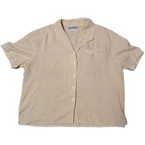 SK & Company Silk Shirt Top Womens Beige Short Sleeve Collared Button Up (J)