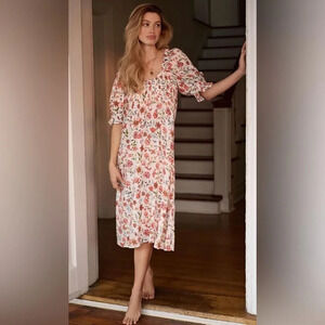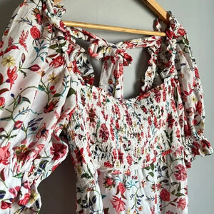 NEW Anthropologie By Mark D. Sikes Smocked Puff-Sleeve Dress Floral