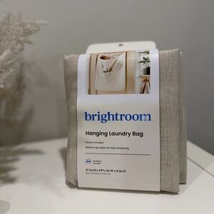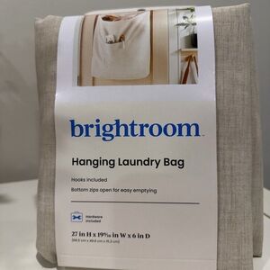 Brightroom hanging laundry bag in beige. Includes hooks and bottom zips for easy emptying.