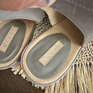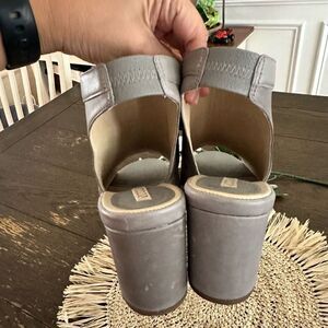 ECCO Gray Leather Peep Toe Block Heel Slingback Ankle Booties sz /41 USA 10-10.5