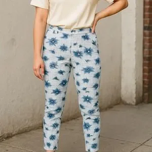 New with tags Nanette Lepore pull on pant in gingham/ floral print. Dress them up or down.