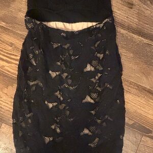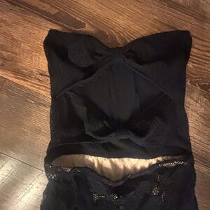 Chic black lace dress. Strapless design. Ideal for special occasions.