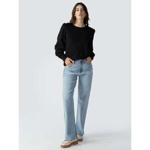 SANCTUARY Wonderland Mix Media Top Sz S Black Peasant Sleeve Cotton Rayon Blend
