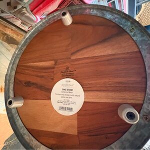 Made of medium brown wood with galvanized steel accents, this round cake stand features a rustic design that complements a variety of decor styles. This stand is sturdy enough to hold a generous amount of baked goods while adding a touch of vintage flair to your presentation. Perfect for showcasing cakes, cupcakes, or other treats at gatherings or everyday use.