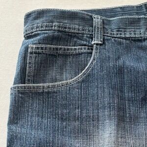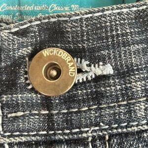 WCKD BRAND Mens Y2K Long Denim Shorts Size 40 Blue Wash Classic Fit Plaid Accent
