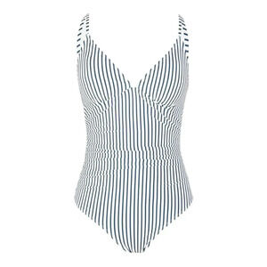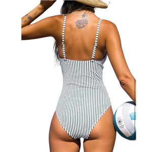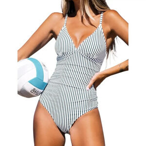 NWT Cupshe Blue Striped Print Tummy Control One Piece Swimsuit - Size Medium