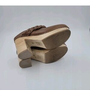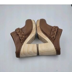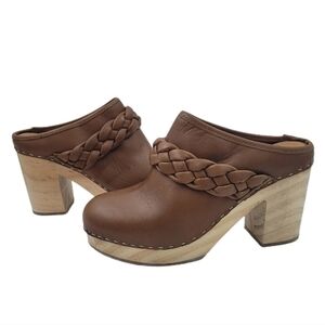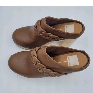 Dolce Vita Hila Saddle Brown Braided Leather Mule Clog Heels Size 7 Wooden Heel