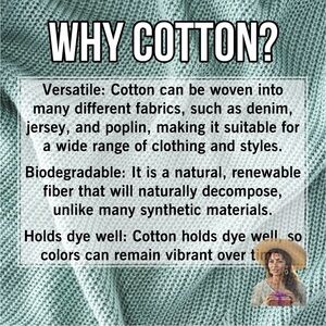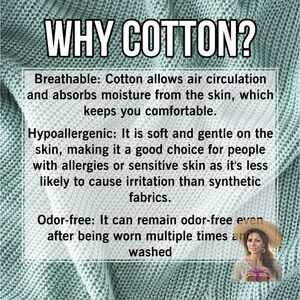 Wearing cotton offers benefits like breathability and comfort, making it ideal for sensitive skin because it is hypoallergenic. It is also a durable, versatile, and easy-to-care-for natural fiber that is biodegradable