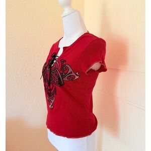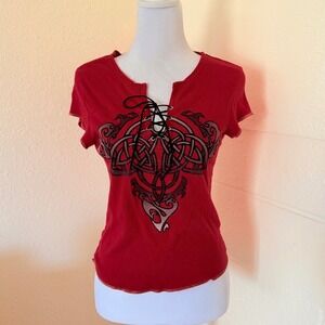 Anchor Blue Graphic Tee Womens L Red Lace Up Celtic Knot Y2K Goth 90s Baby Tee